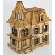 The building proper is 10 by 4 3/4 inches in dimension with the porch jutting an additional 3 inches. From the ground to the tower tip is 9 & 3/4 inches. Our model features a removable roof, removable turret, removable second story, interior stairs, as well as a number of boarded over windows and damaged features.