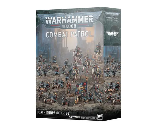 Combat Patrol: Death Korps of Krieg delivers a battle-hardened force straight from the trenches. A stern Commissar commands the advance, backed by a disciplined Command Squad and a full squad of relentless infantry. Heavy fire support comes from a weapons team fielding three formidable guns and a Fire Coordinator, while five Death Riders thunder forward to smash through enemy lines in a devastating cavalry charge. This box is fantastic for anyone looking to start their Death Korps army or even bolster their current ranks!