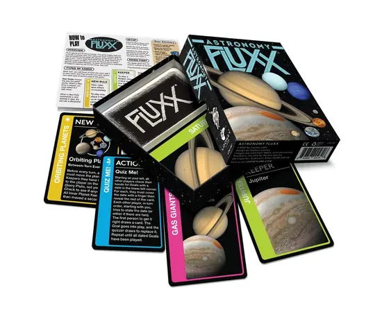 If you've ever dreamt of being an astronaut, Astronomy Fluxx is for you! This version of Fluxx takes you to outer space, but this time it’s not sci-fi. Featuring stunning NASA photographs of planets and other astronomical objects, you'll have a blast while learning about space and humankind's space flight history.