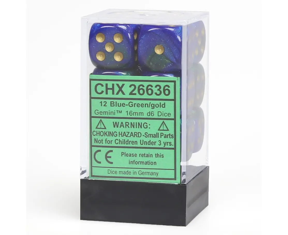 Chessex 16mm Dice Block: Gemini 3 - Blue-Green/Gold Black