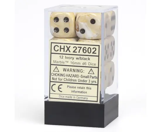 Chessex 16mm Dice Block: Marble - Ivory/Black