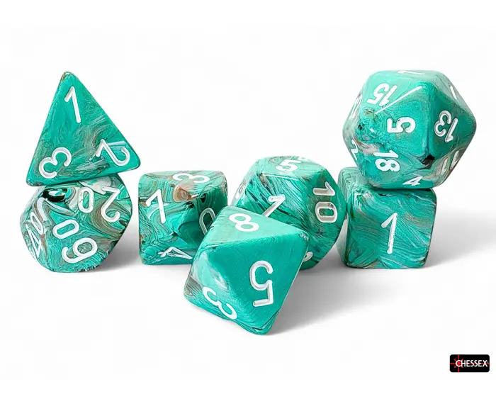 Chessex Mega Dice Set of 7 - Marble Oxi-Copper with White