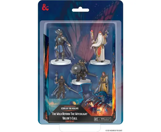 The 20th set in our Icons of the Realms line of pre-painted Dungeons & Dragons miniatures Starter Set.Starter Set 1 is a 5 NPC miniature blister comprised of premium sculpted figures themed after Wizards fall release The Wild Beyond the Witchlight.This set contains:StrongheartElkhornRinglerunMolliverMercion