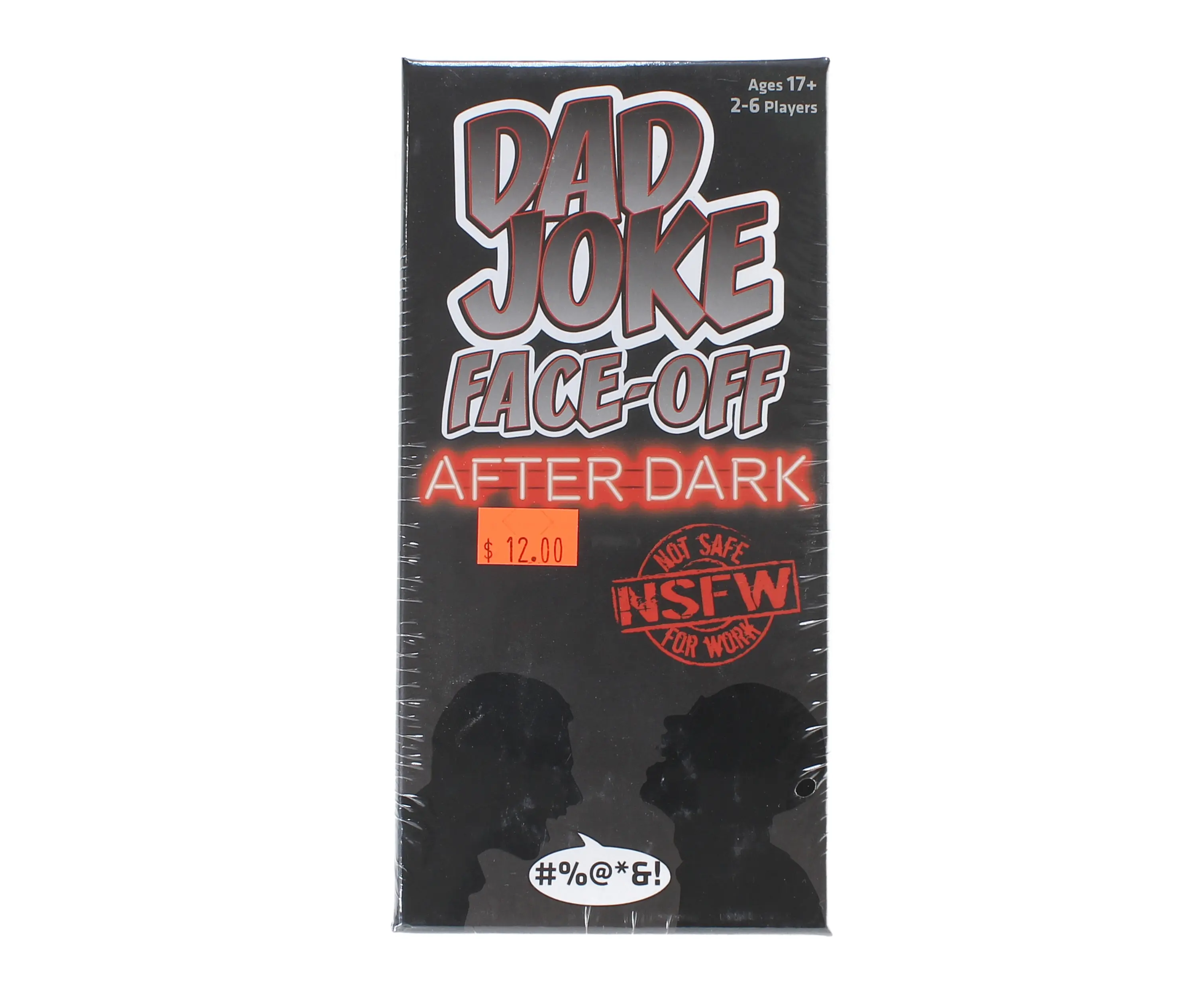 In Dad Joke Face-Off After Dark, players sit face-to-face and take turns telling jokes. Read a Dad Joke off of your card and do so WITHOUT SMILING OR LAUGHING, while trying to get your opponent to crack. Sounds pretty simple? Don’t take our word for it, get your friends together for a grown-up game night and see who laughs… or doesn’t laugh the most!
