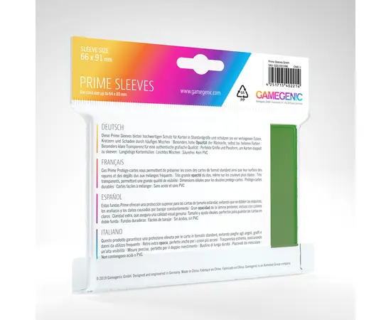 Card-sleeves are an essential requirement to protect your valuable gaming cards. These Prime Sleeves provide a premium protection for standard-sized cards and prevent them from bent corners, scratches or damages by frequent shuffling. Due to their fine, matte back side players will experience a great shuffle feel and don’t to have struggle with slipping deck staples. The sleeves are optimized in size to ensure a professional protection and work perfectly for double-sleeving (sleeve-within-sleeve). One pack contains 100 sleeves, matching also larger deck formats.
