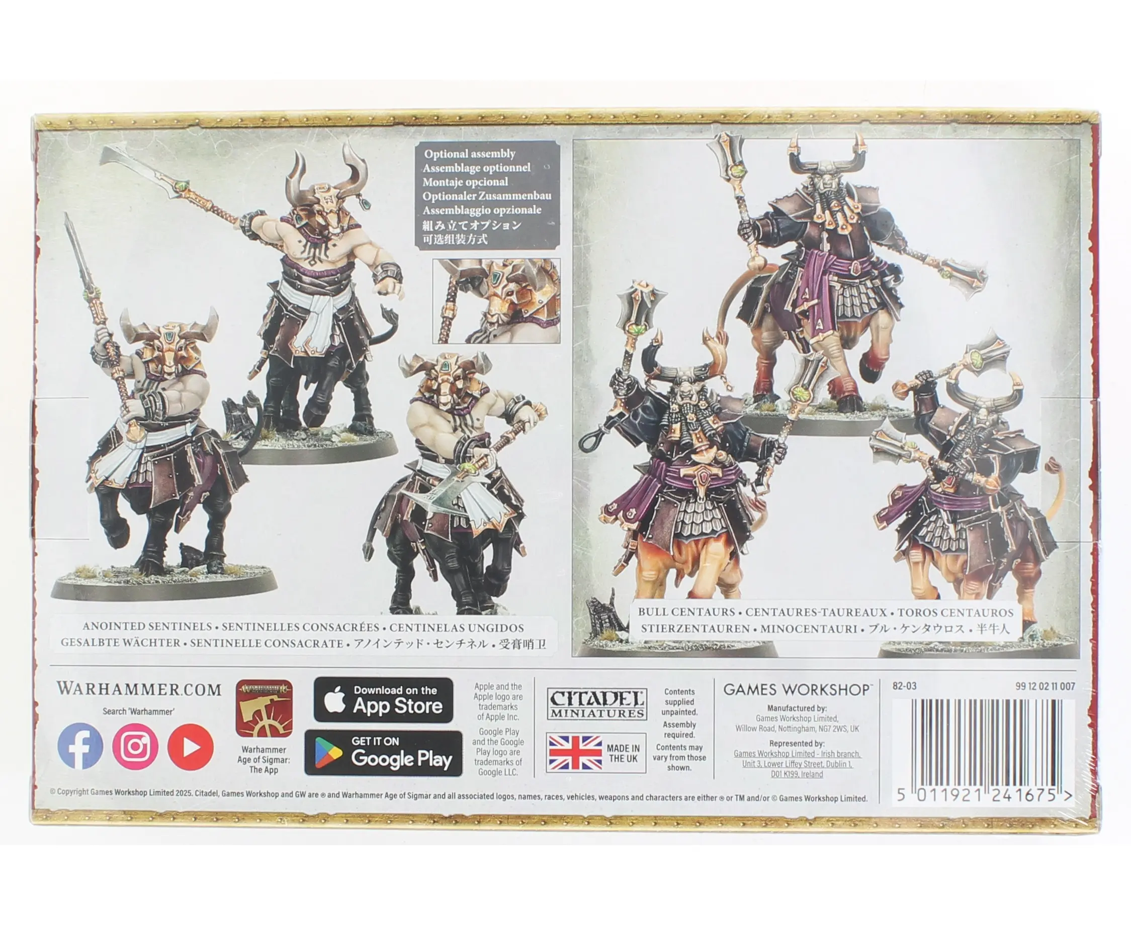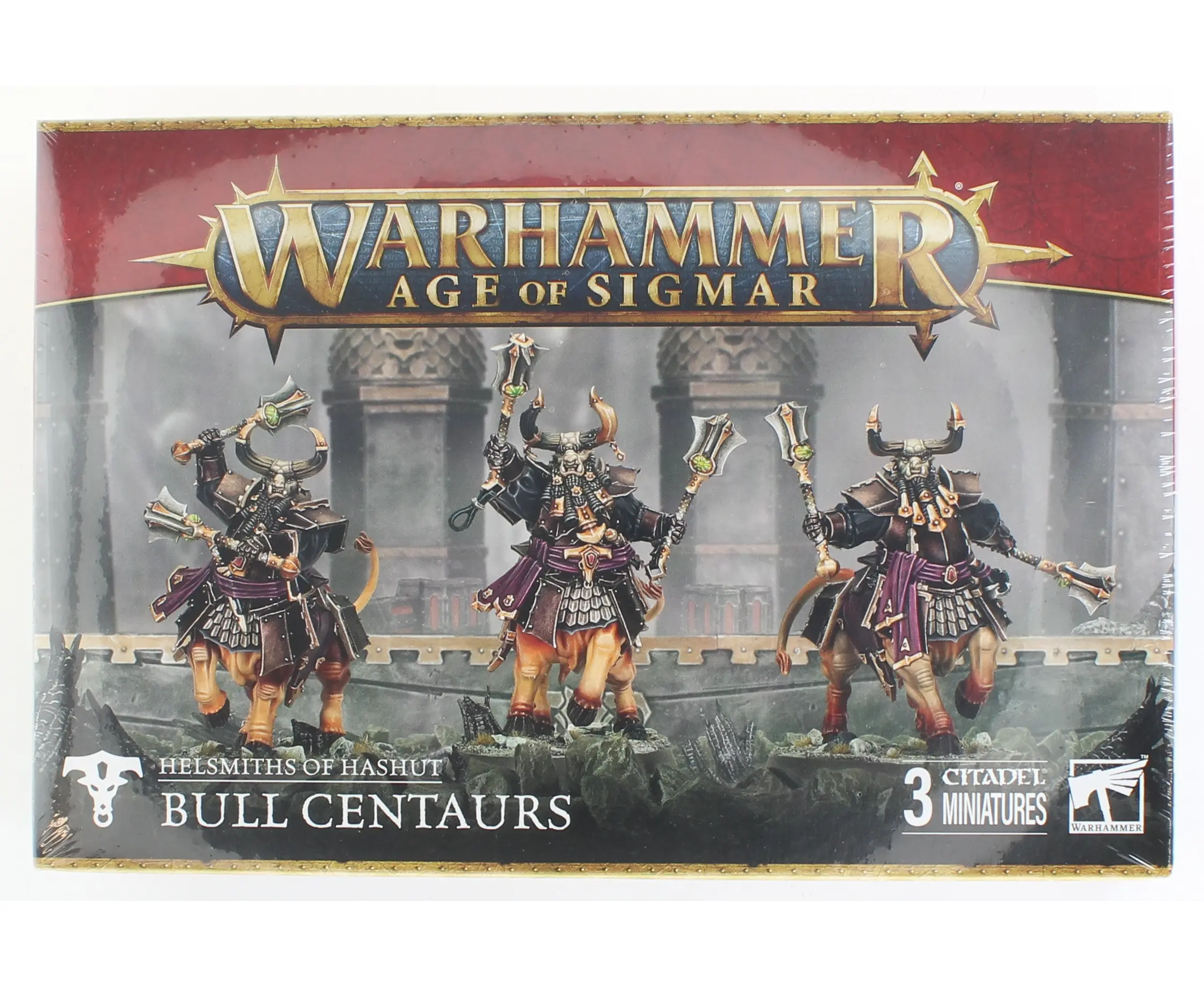This kit builds three Bull Centaurs, or three Anointed Sentinels, a more fanatical breed raised to serve as temple guardians. These zealous warriors bellow scripture across the battlefield as the Helsmiths lay waste to their enemies, unleashing devastating counter-charges against any who dare disrupt their mastersÂ’ work. Each Bull Centaur comes with four interchangeable horn options, while the Anointed Sentinels include three interchangeable masks, allowing for unique customization. The set also includes a Helsmiths of Hashut transfer sheet with 450 transfers.