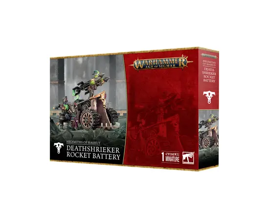 The Helsmiths of Hashut are masters of infernal invention, forging devastating weapons such as this Deathshrieker Rocket Battery, whose screaming payload contains a writhing daemonic flame that bursts into life the moment it meets the air. This kit can also build a Tormentor Bombard, a fearsome artillery piece that hurls shells infused with the raw essence of Chaos. Each war engine is crewed by skilled Helsmith artificers, and the box includes a Helsmiths of Hashut transfer sheet with 450 transfers to complete your infernal arsenal.
