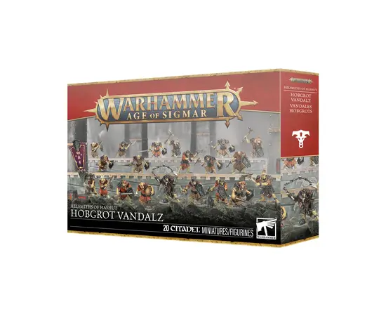 Hobgrots are cunning, treacherous creatures whoÂ’ve learned that serving the Helmsmiths of Hashut is far safer than opposing it. This set builds 20 Hobgrot Vandalz, including a sneaky champion armed with either a cruel chain weapon or a vicious dagger. YouÂ’ll also find a Helsmiths of Hashut transfer sheet featuring 450 transfers.