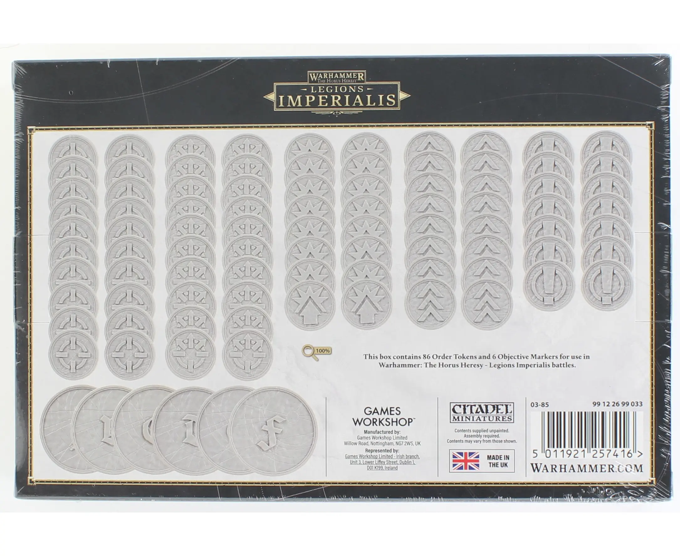 Stay on top of the action with this set of 92 plastic tokens, designed to keep your games running smoothly and your strategy crystal clear. Inside youÂ’ll find 86 Order tokens- including 20 First Fire, 20 Advance, 16 March, 16 Charge, and 14 Fall Back- plus six Objective markers (A through F) to track critical mission goals.