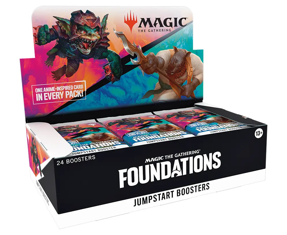 Make Magic happen with amazing mash-ups. Just grab two Jumpstart Boosters, shuffle them together, and youÂ’re ready to go! In this Foundations Jumpstart Booster Box youÂ’ll find 24 Jumpstart Boosters, each containing 20 Magic cards, including all the Lands you need to play. Every pack contains 1 card with anime-inspired art and includes at least 1 Rare or Mythic Rare card. If youÂ’re looking to maximize your mashups, Foundations Jumpstart Boosters can be combined with packs from any other Jumpstart product.