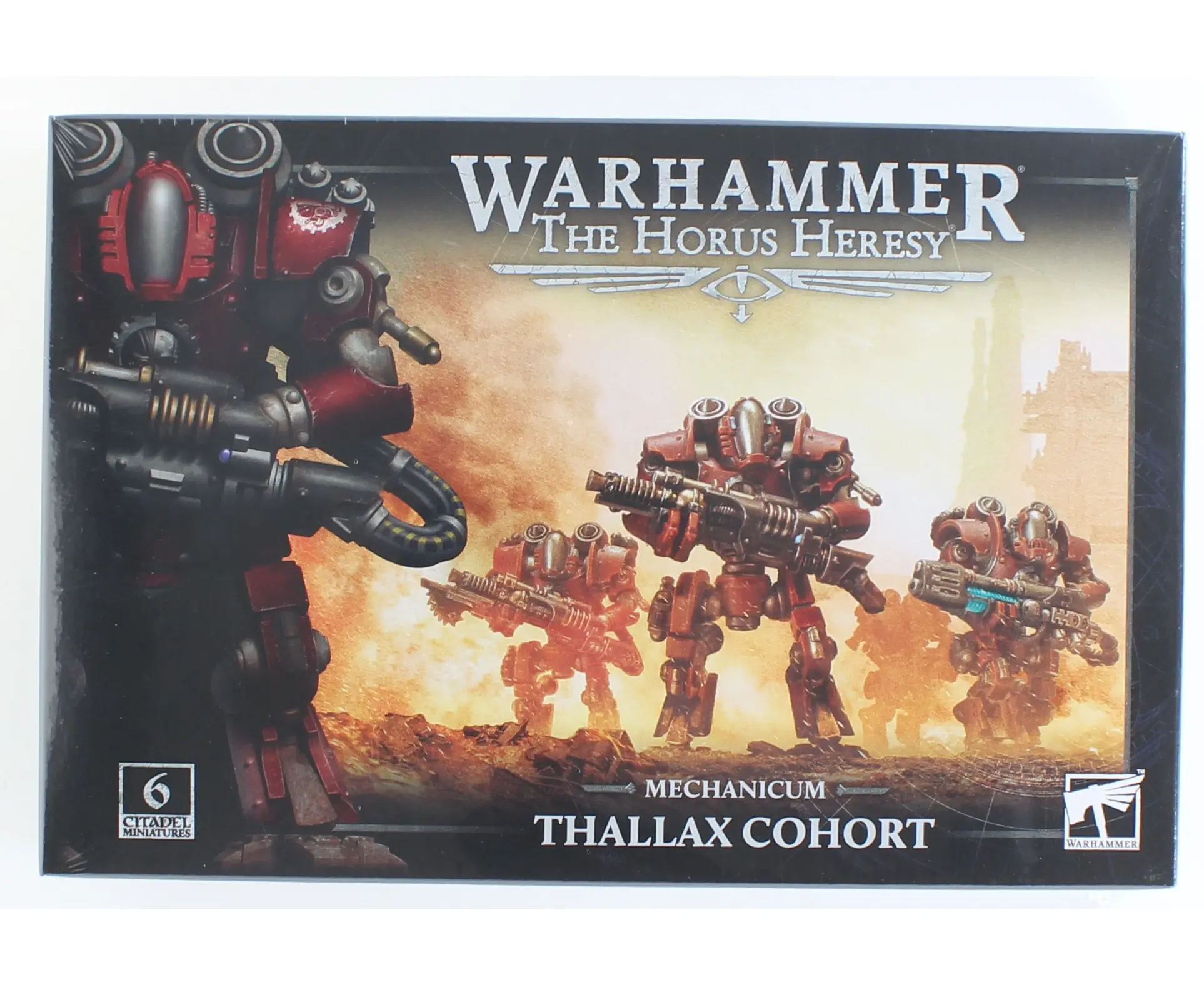 The Thallax Cohort serves as the adaptable backbone of most Mechanicum forces. These cyborgs maintain a degree of independent thought, making them highly effective as shock troops. This box builds six Thallax equipped with lightning guns and offers options to outfit two of them with phased plasma-fusils, photon thrusters, or multi-meltas. It also includes melta bombs for each model, various head design choices, and a Mechanicum Constructs transfer sheet with 558 decals.