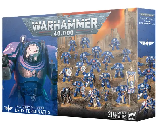 Bring unstoppable might to your tabletop with the Crux Terminatus Battleforce, a powerhouse collection built entirely around the toughest and most elite warriors the Imperium has to offer. This set is the first place to get the brand-new Assault Terminators, loaded with enough options to build two full squads of five armed with thunder hammers and storm shields or pairs of savage lightning claws, giving you ten Assault Terminators ready to crush anything in their path. Backing them up is a full command of heroes clad in Terminator Armour: the new Ancient in Terminator Armour carrying a banner of glory, a multi-part Terminator Captain, a Terminator Chaplain, and five classic Terminators to round out your elite strike force.