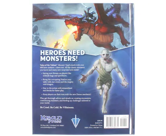 The Monster Vault contains all the information a GM needs to create encounters with monsters, including monster roles and tactics, guidelines for modifying monsters to fit your campaign, optional rules for Doom points, and rules for characters wanting to harvest monsters for unique crafting and spell components.