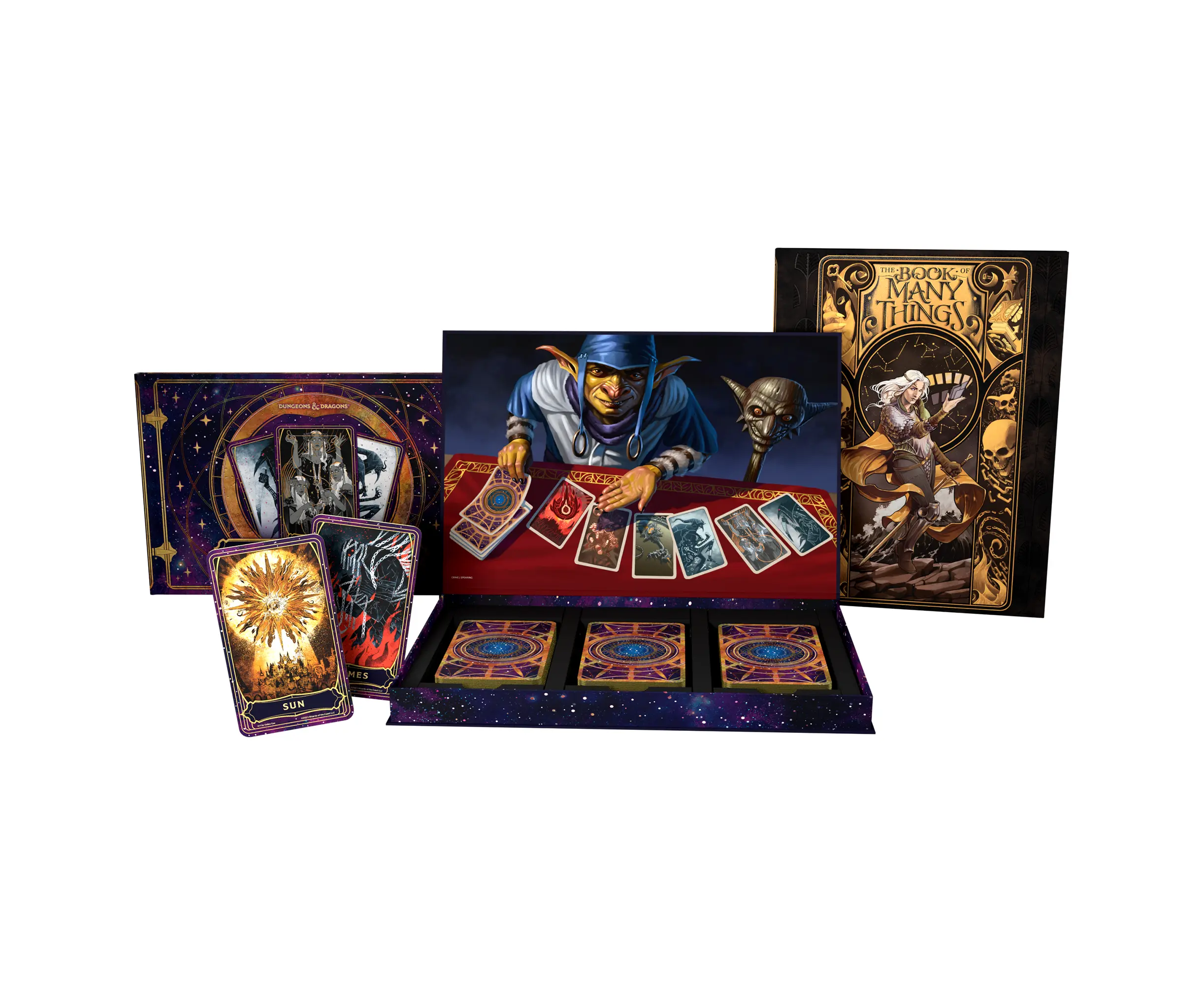 The Deck of Many Things is a famous DUNGEONS & DRAGONS® magic item whose effects are as spectacular as they are unpredictable. Within this box, you’ll find the Book of Many Things, which illuminates the deck’s mysteries and provides everything Dungeon Masters need to use it in their campaigns. This book includes advice, adventure locations, and new monsters for Dungeon Masters, as well as character options, magic items, and organizations for players, all inspired by the deck.
