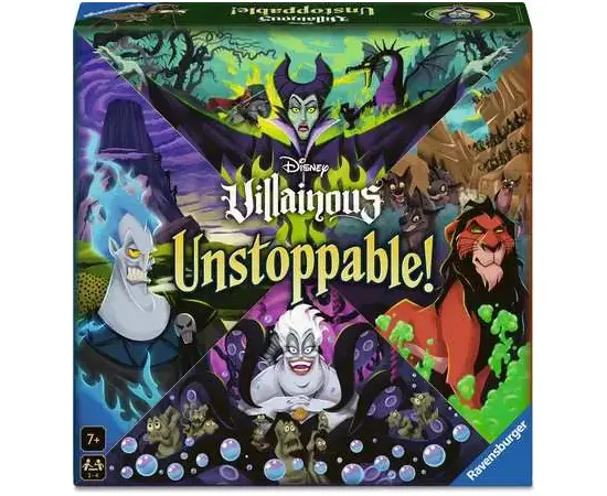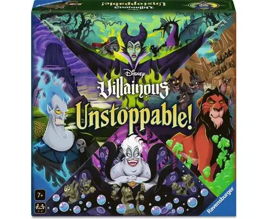 Disney Villainous Unstoppable! is a family-friendly game for ages 7 and up. Retell your favorite Disney stories from the villainÂ’s point of view. This time everything will go according to plan... if you play your cards right!