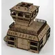Our large warehouse has a sizable 12 and 1/2 inch by 7 and 3/4 inch footprint. The interior space is 7 & 1/2 by 7 & 3/4 inches. As with all our designs, the roof and second floor are removable allowing you to utilize all of your building in play. The walkways, in and outside, will comfortably hold miniatures on a 32mm base. And the peaked roof at 7 and 1/2 inches in height will firmly block line of sight for all but the tallest warmachines.